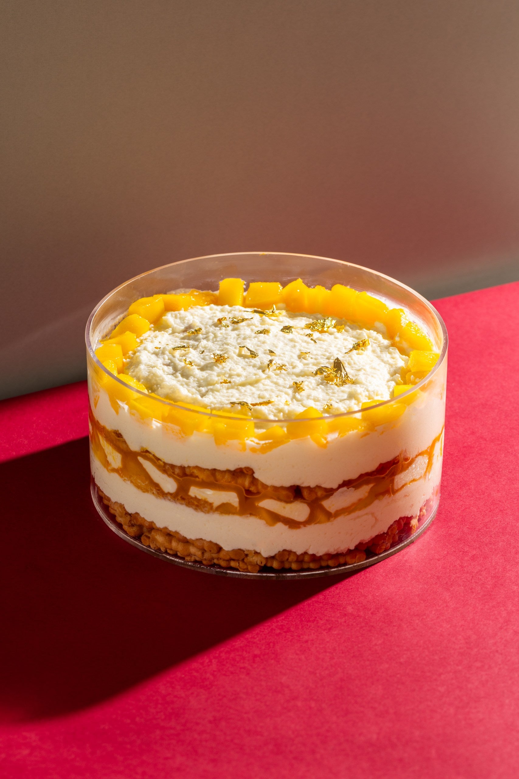 Mango sorbet, milk cookies, coconut cremeux, and candied vermicelli.